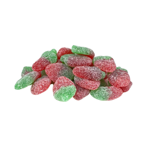 Ingredients: Sugars (sugar, corn syrup), modified corn starch, tartaric acid, citric acid, sodium citrate, lactic acid, calcium lactate, artificial flavour, hydrogenated palm oil, allure red, tartrazine, brilliant blue FCF.